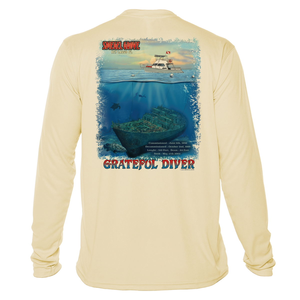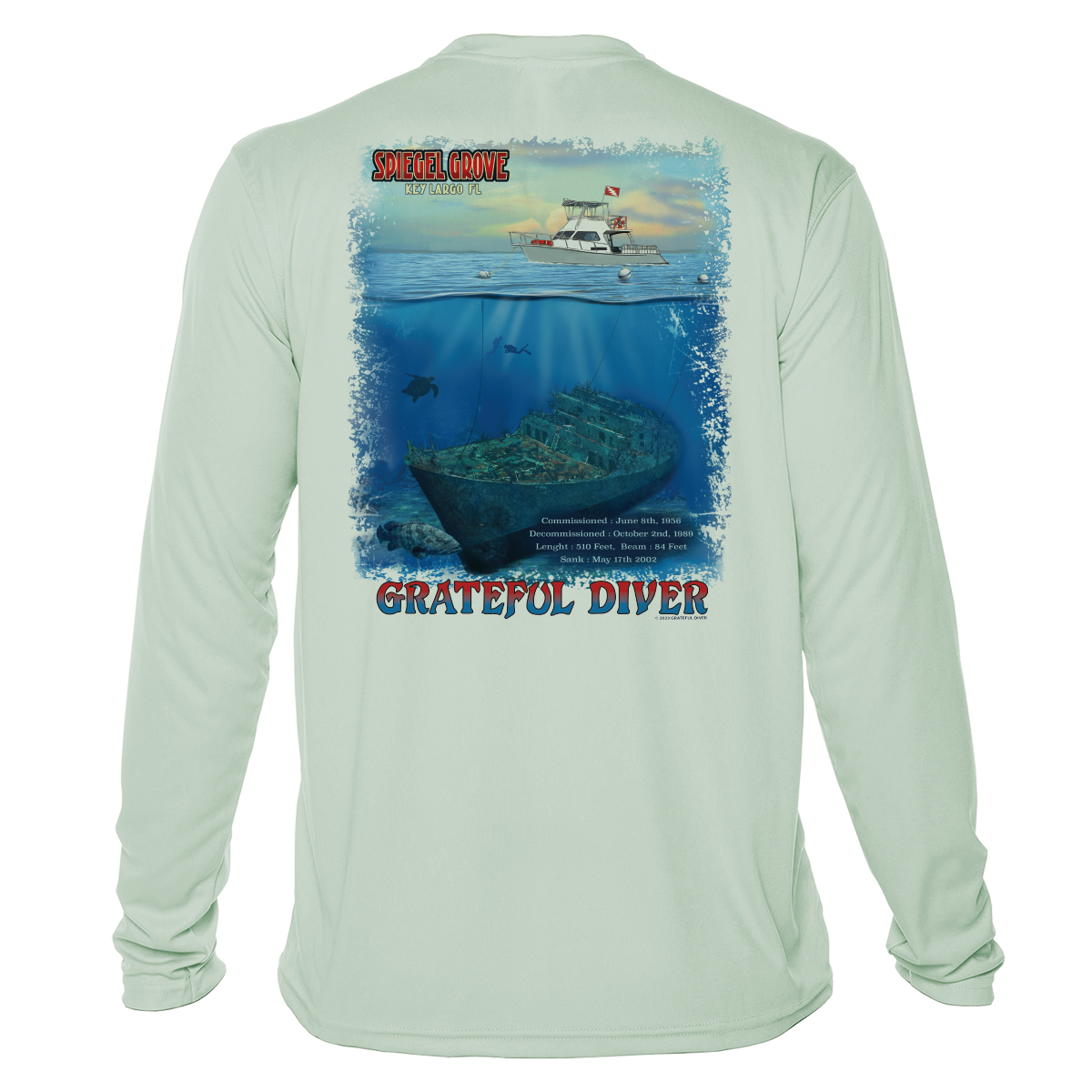 Located at the beginning of the Florida Keys Wreck Trek is the world famous Spiegel Grove! Show your love for this historic site with the all new Grateful Diver Spiegel Grove UPF 50+ performance shirt!