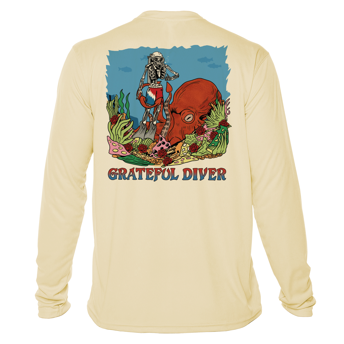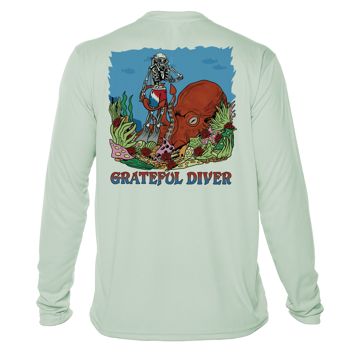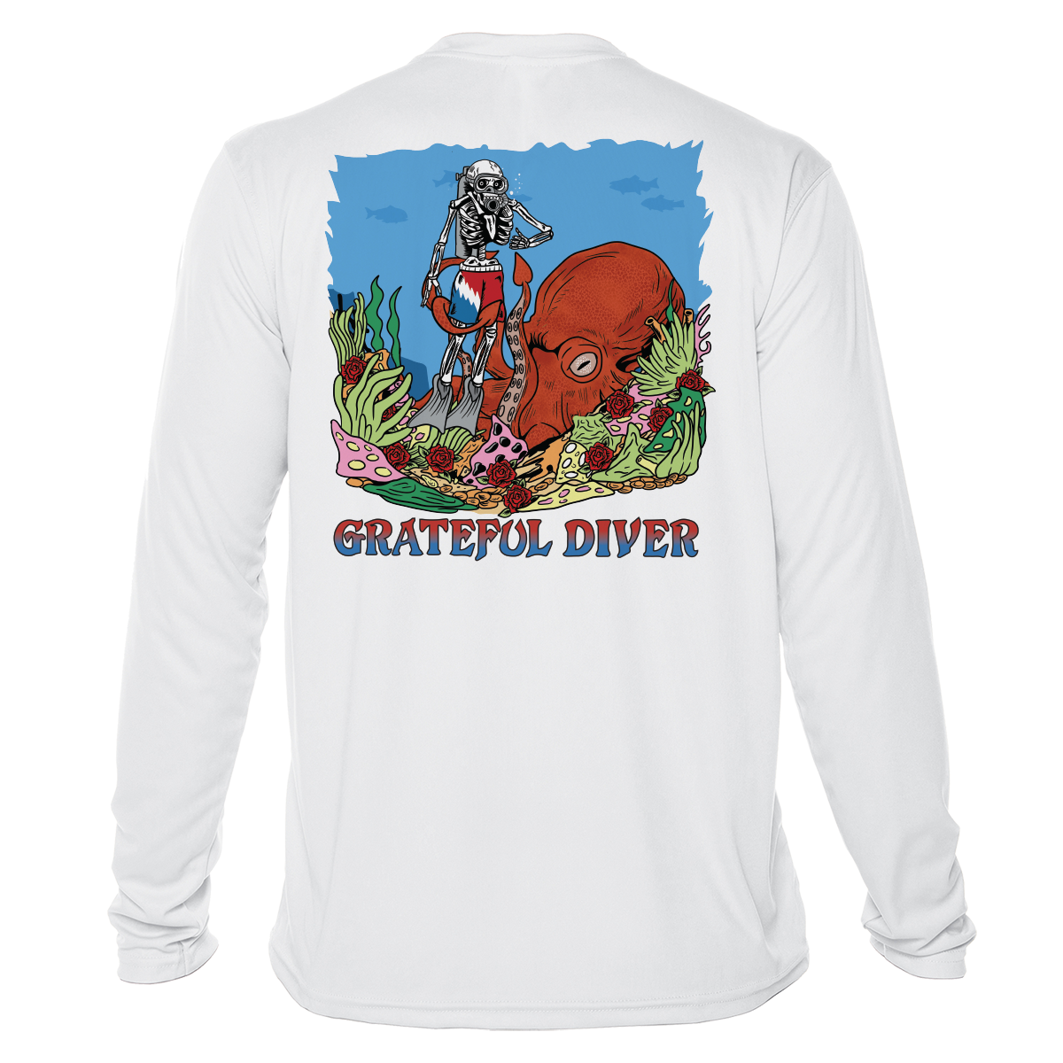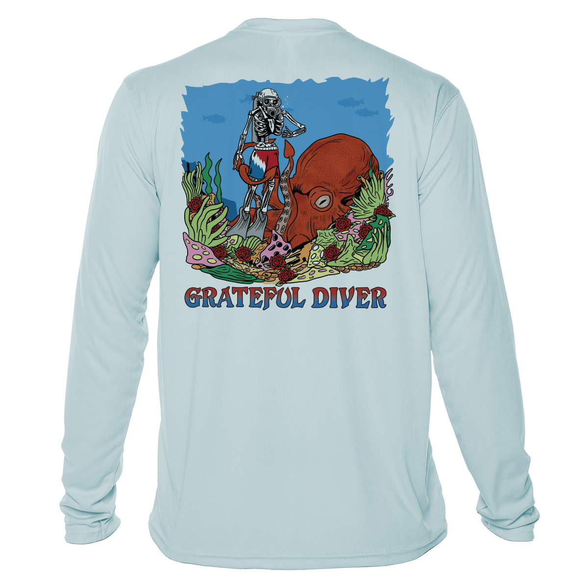 When adventure gets wild, and the Kraken’s on your tail, just keep kicking. Stay positive and adventurous in the Grateful Diver Release The Kraken long-sleeve UV shirt!