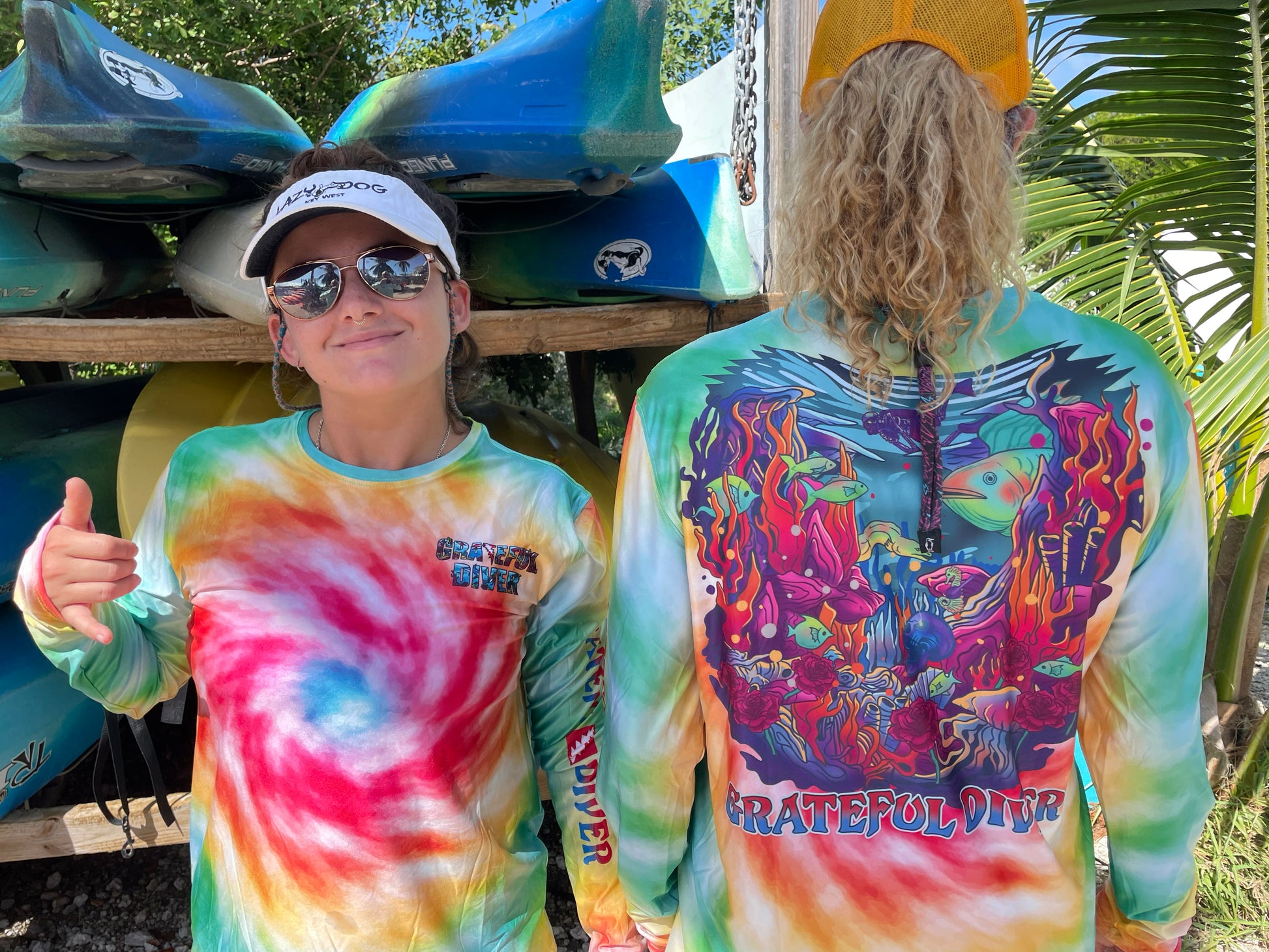 Embrace the vibrant, groovy colors of the underwater world with our Grateful Diver Psychedelic Tie Dye UV long-sleeve shirt, perfect for those who dive with style and spirit. Whether you're exploring coral reefs or paddling out on a kayak, this shirt keeps you cool, protected, and immersed in the magic of the ocean.