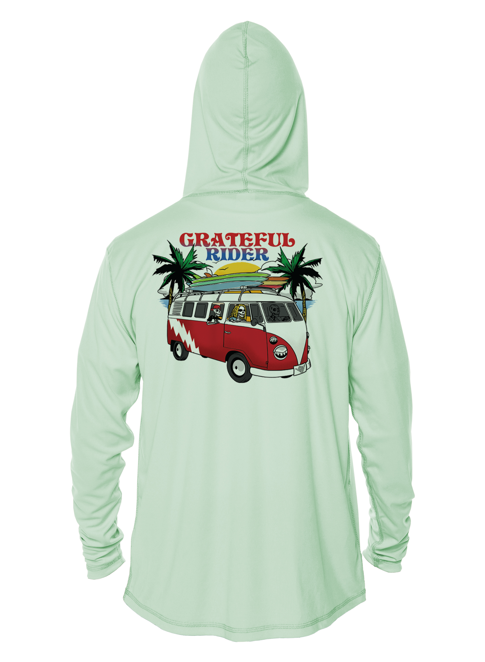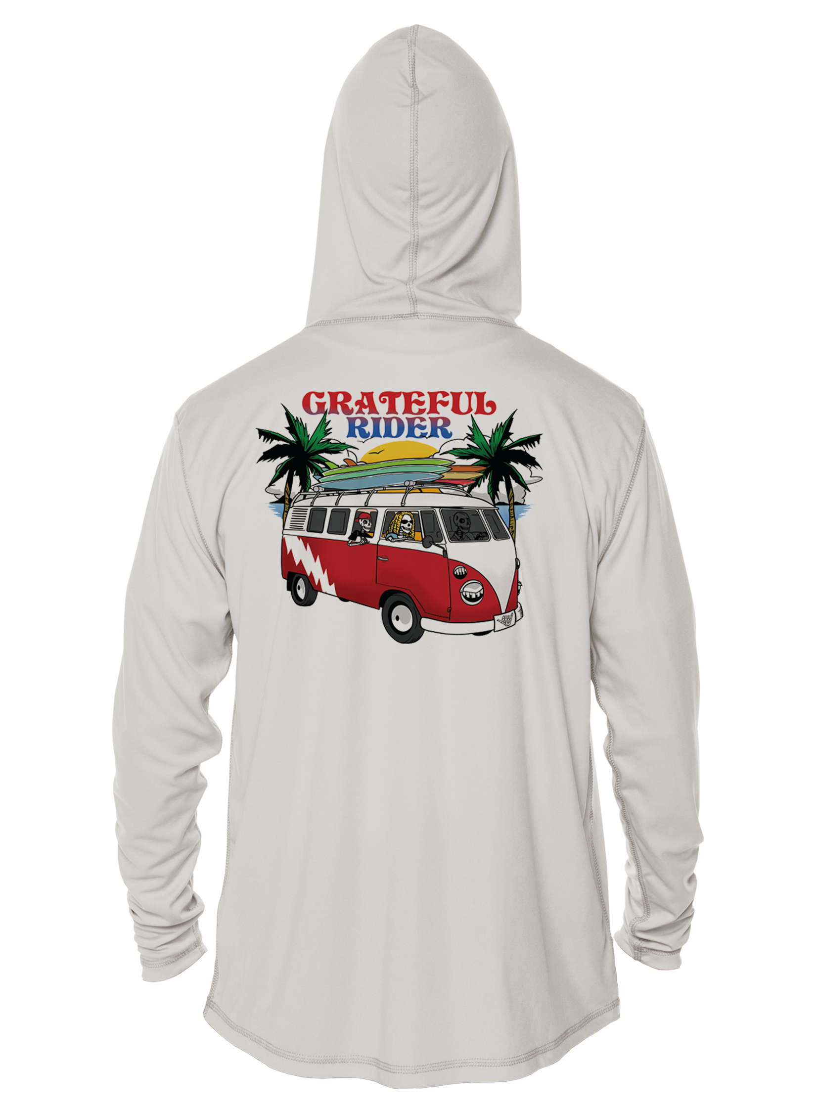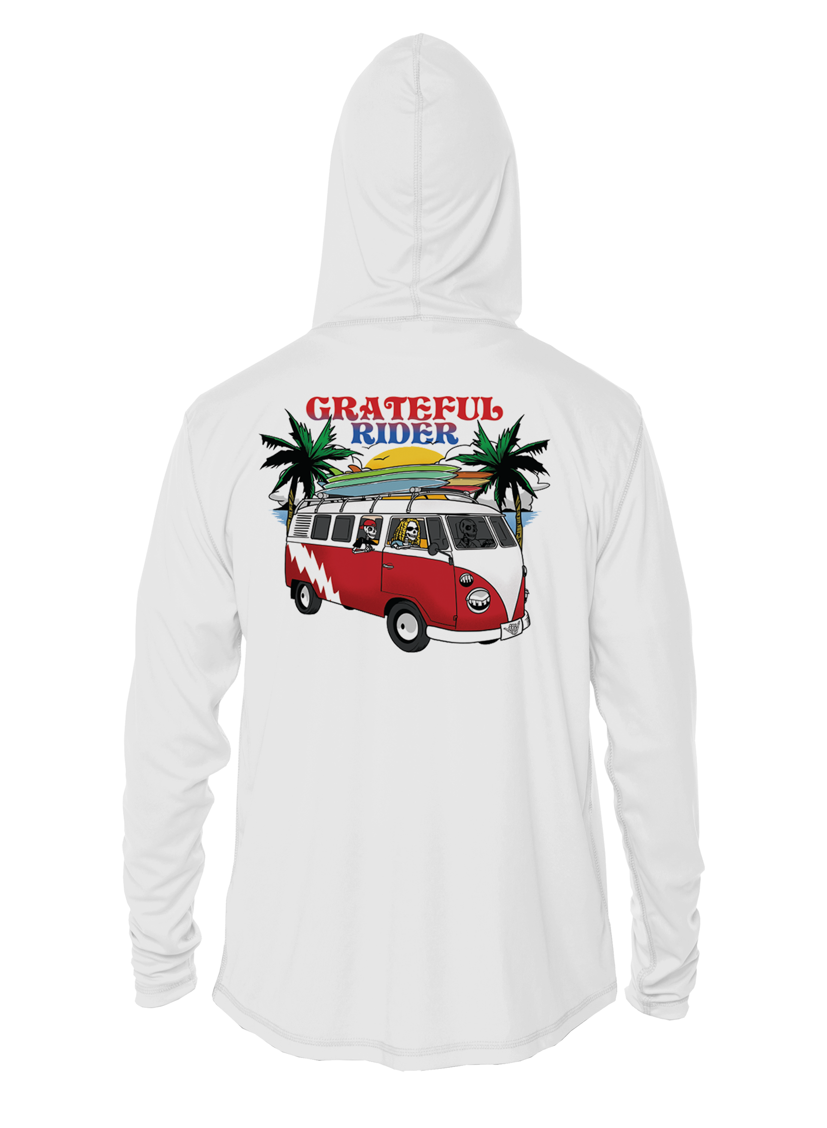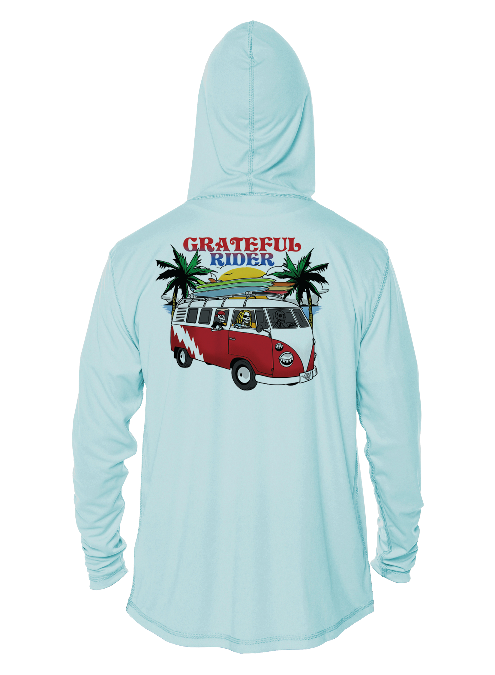 Crank up the tunes, toss the boards on the roof, and load the cooler—because every great day starts with great vibes. When it's time to hit the road, make sure you're protected from the sun in our new Grateful Rider Truckin' UPF 50+ performance shirt!