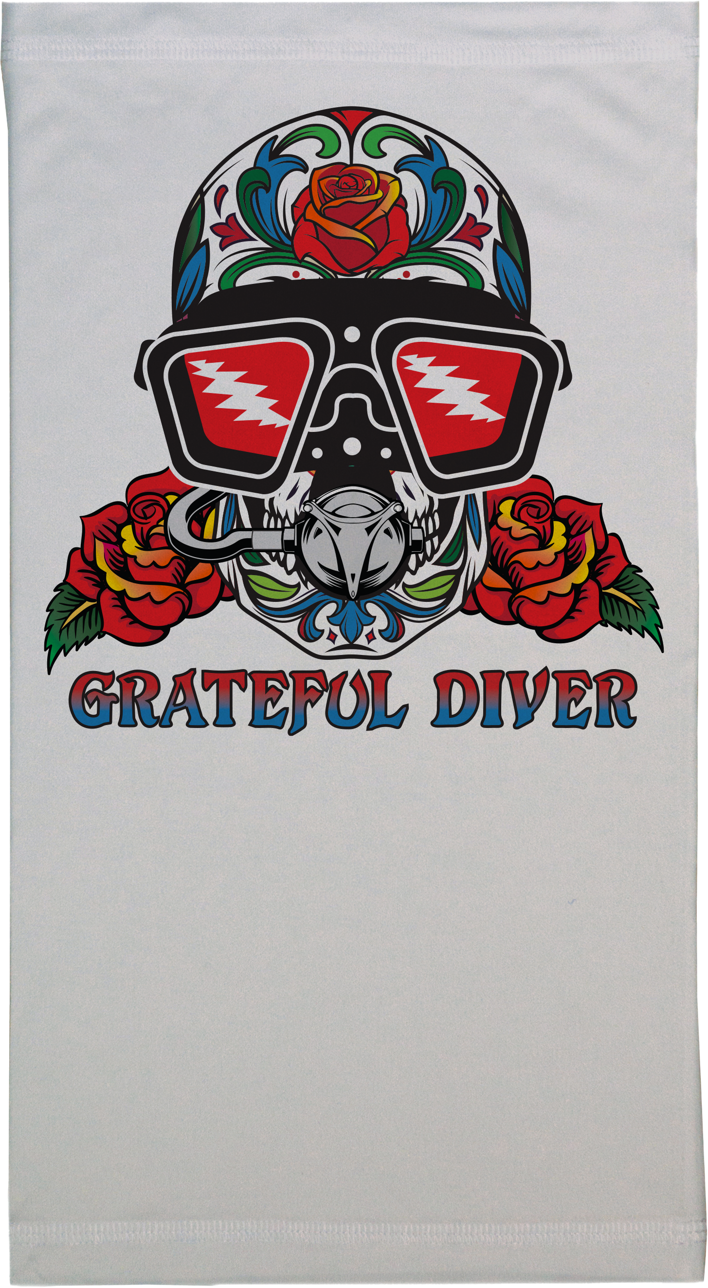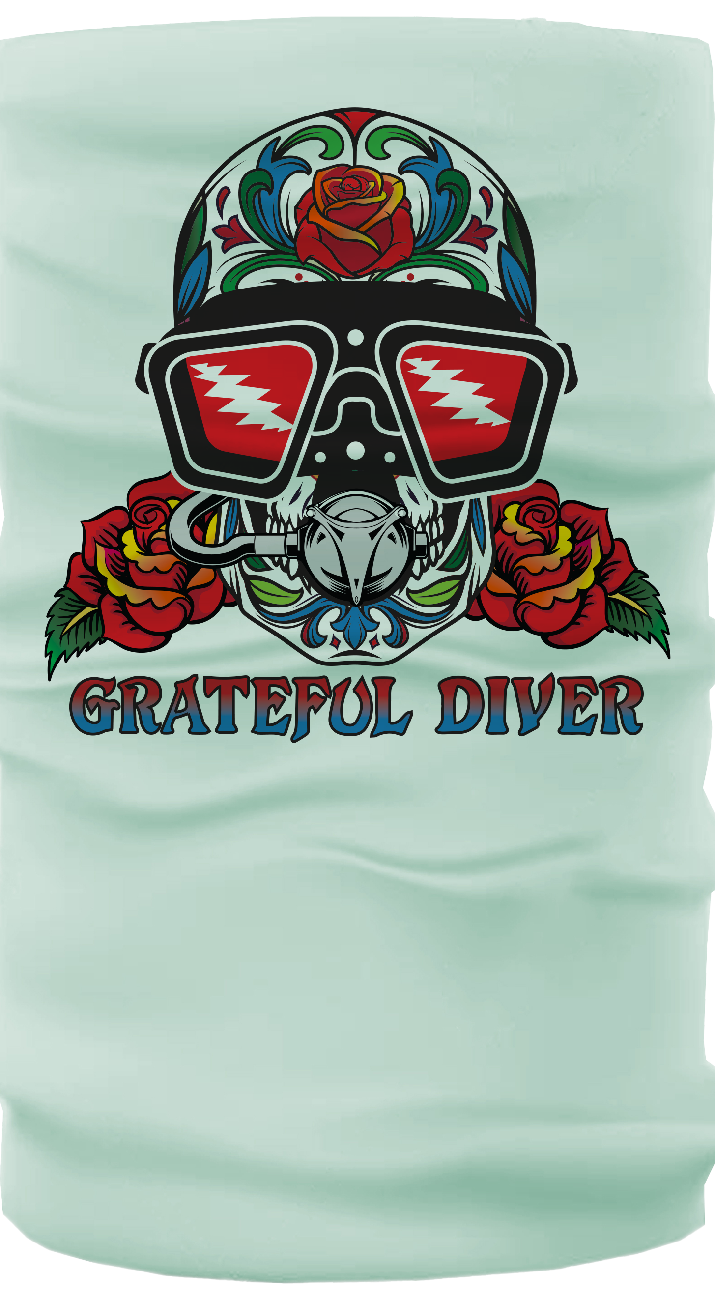 The Grateful Diver Sugar Skull neck gaiter is the MVP of accessories. It's breathable, fast-drying, and offers protection from the sun, wind, dust, and insects, This super-soft all-in-one face covering, neck gaiter, and headband features our popular Grateful Diver Sugar Skull design! Take this on all your adventures to showcase your love for diving, the Grateful Dead, and marine conservation.