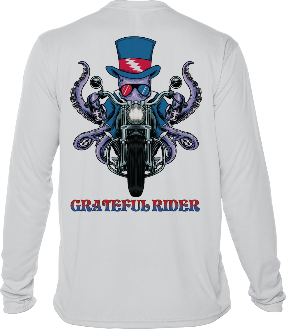 Hit the open road with Octopus Sam in the all new Grateful Rider Motorcycle Sam UV Performance Shirt!