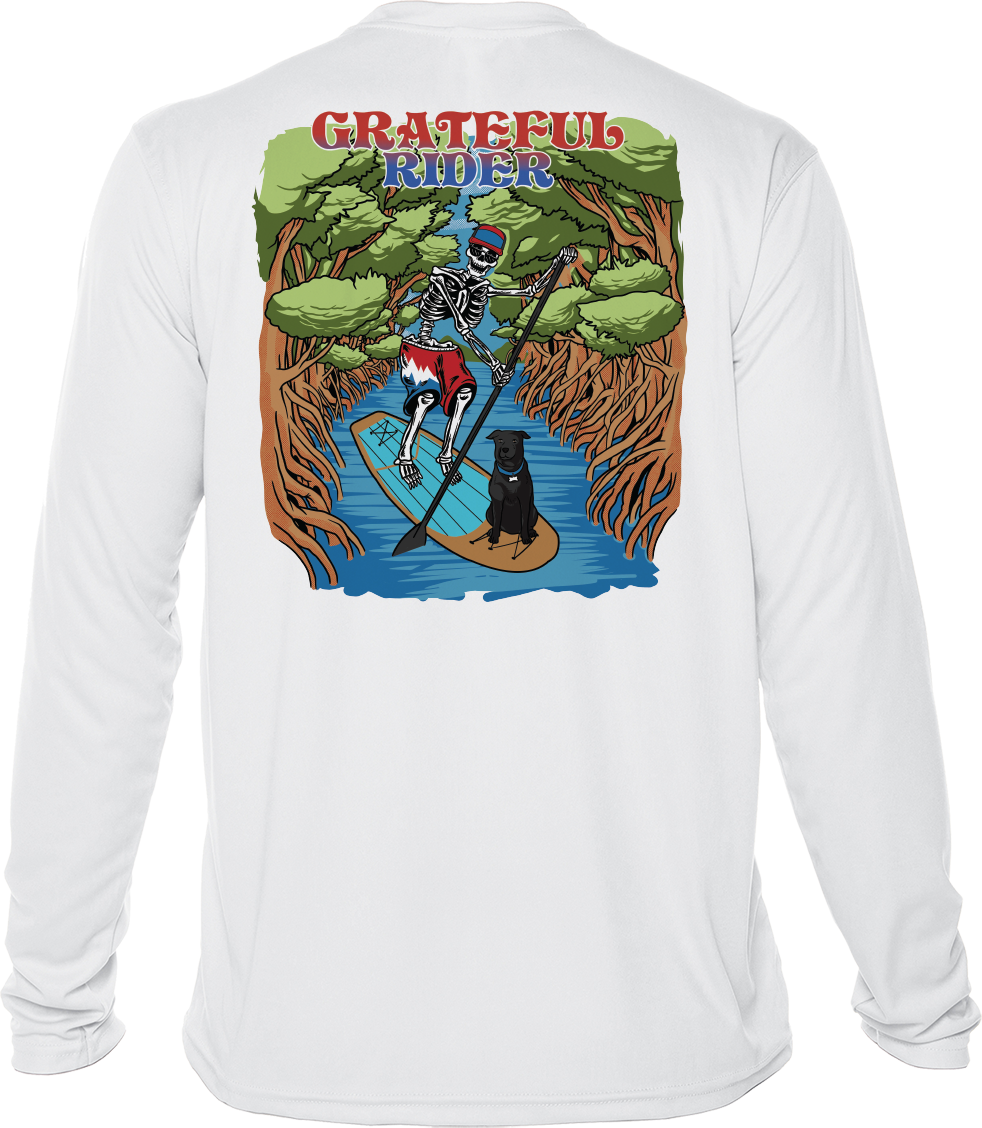 "These Grateful Diver UV shirts are pretty much my uniform. I'm a jet ski guide and am in the sun and on water all day so I need a lightweight shirt like this that looks good, dries fast, and adds some sun protection.